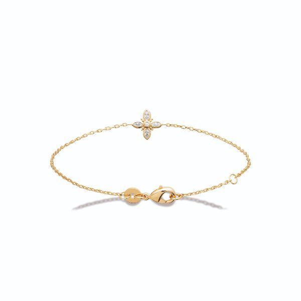 Bracelet fin en plaqué or 750/000 et oxyde de zirconium. Taille : 18cm. Ecrin gainé en option. Ref : 9J390J |