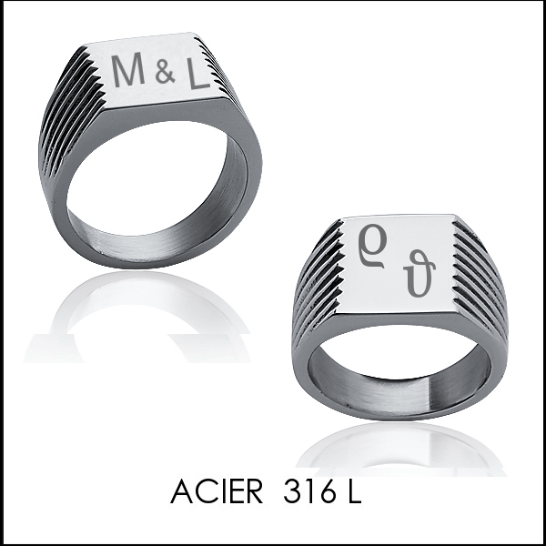 Chevalière personnalisée, déco rayures sur côtés, en acier chirurgical ( 316 L ). Gravure comprise et pochette organza fournie. Vous pouvez graver de 1 à 3 lettres sur le plateau de la chevalière. référence : AA44000 Il vous suffit, de nous envoyer votre(vos) initiales(s) via le formulaire ci-dessous. |