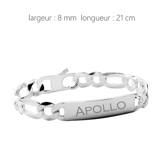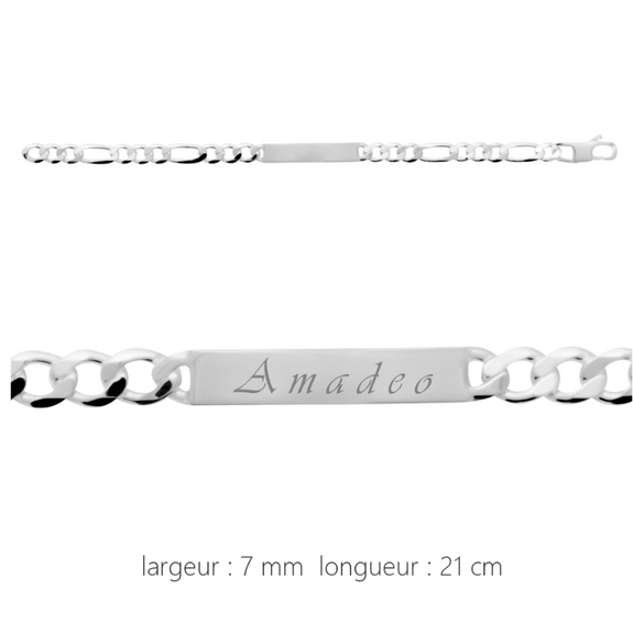 Gourmette homme mailles alternées gravure prénom, en argent poli brillant garanti 925/000. Poids : 18,40g. Longueur : 21 cm. largeur : 8 mm. Plaque à graver : 36 mm x 8 mm. Prix gravure joaillerie comprise recto verso, prénom, date,10 lettres maximum par face. Voir polices & Logos. Ecrin gainé blanc, rouge, noir, vert, selon arrivage et/ou emballage cadeau en options Les emballages. ref : 56E008. Il vous suffit, de nous envoyer votre(vos) texte(s) via le formulaire ci-dessous. |