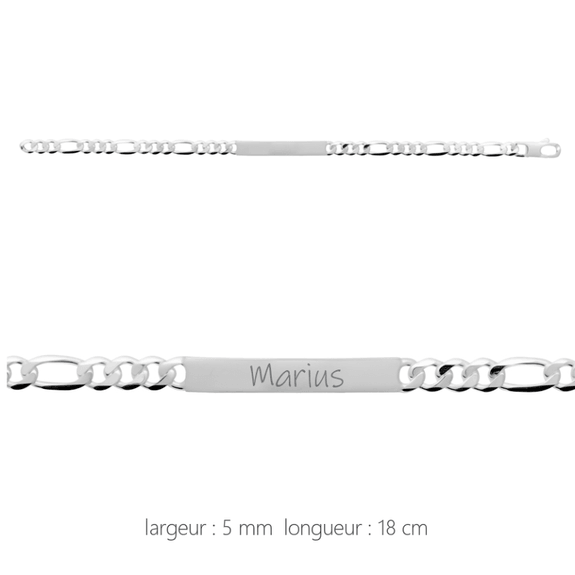 Bracelet gourmette fine mailles alternées gravure prénom, en argent poli brillant garanti 925/000. Poids : 5.60 grs. Longueur : 18 cm. largeur : 5 mm. Plaque à graver : 32 mm x 5 mm. Prix gravure joaillerie comprise recto verso, prénom, date,10 lettres maximum par face. Voir polices & Logos. Ecrin gainé et/ou emballage cadeau en options Les emballages. ref : 56E005. Il vous suffit, de nous envoyer votre(vos) texte(s) via le formulaire ci-dessous. |