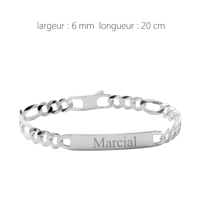 Bracelet gourmette fine mailles alternées gravure prénom, en argent poli brillant garanti 925/000. Poids : 9.50 grs. Longueur : 20 cm. largeur : 6 mm. Plaque à graver : 34 mm x 6 mm. Prix gravure joaillerie comprise recto verso, prénom, date,10 lettres maximum par face. Voir polices & Logos. Ecrin gainé blanc, rouge, noir, vert, selon arrivage et/ou emballage cadeau en options Les emballages. ref : 56E006. Il vous suffit, de nous envoyer votre(vos) texte(s) via le formulaire ci-dessous. |