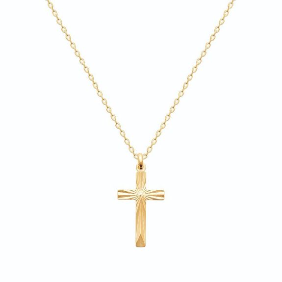 Pendentif croix relief plaqué or 750/000.Option chaine. Ecrin gainé et/ou emballage cadeau en option. Ref : Z48550. |