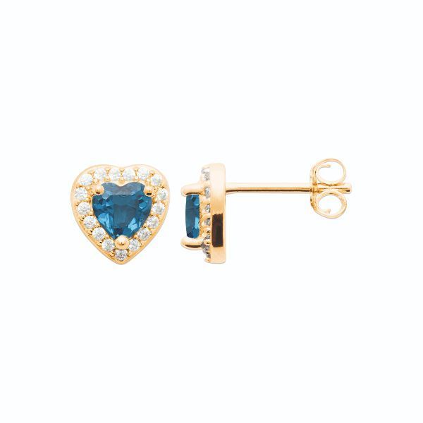 2 puces d'oreilles coeurs en plaqué or 750/000 et oxyde de zirconium BLEU. Ecrin gainé en option. Ref : Z3046440 |